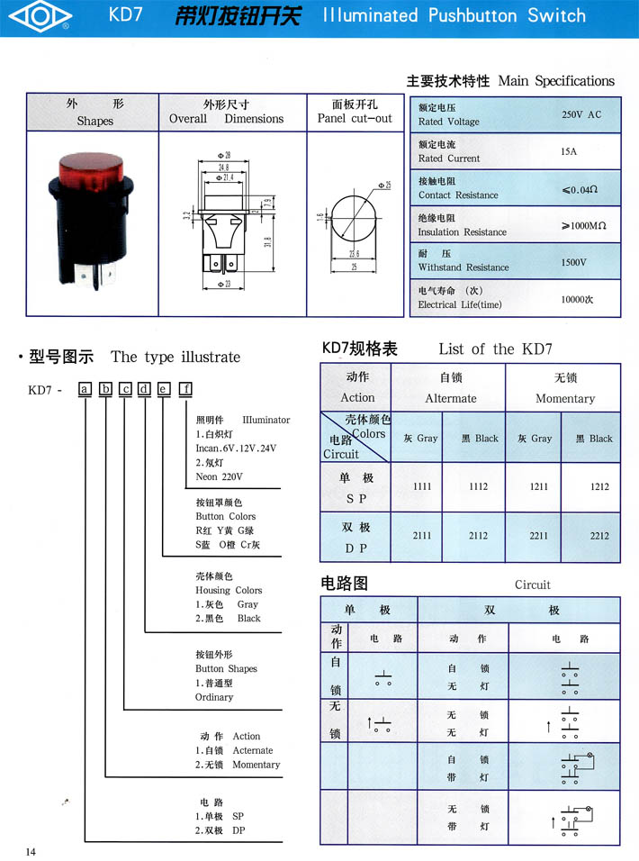 • KD7系列帶燈按鈕開(kāi)關(guān) 產(chǎn)品型號(hào):KD7系列帶燈按鈕開(kāi)關(guān)
