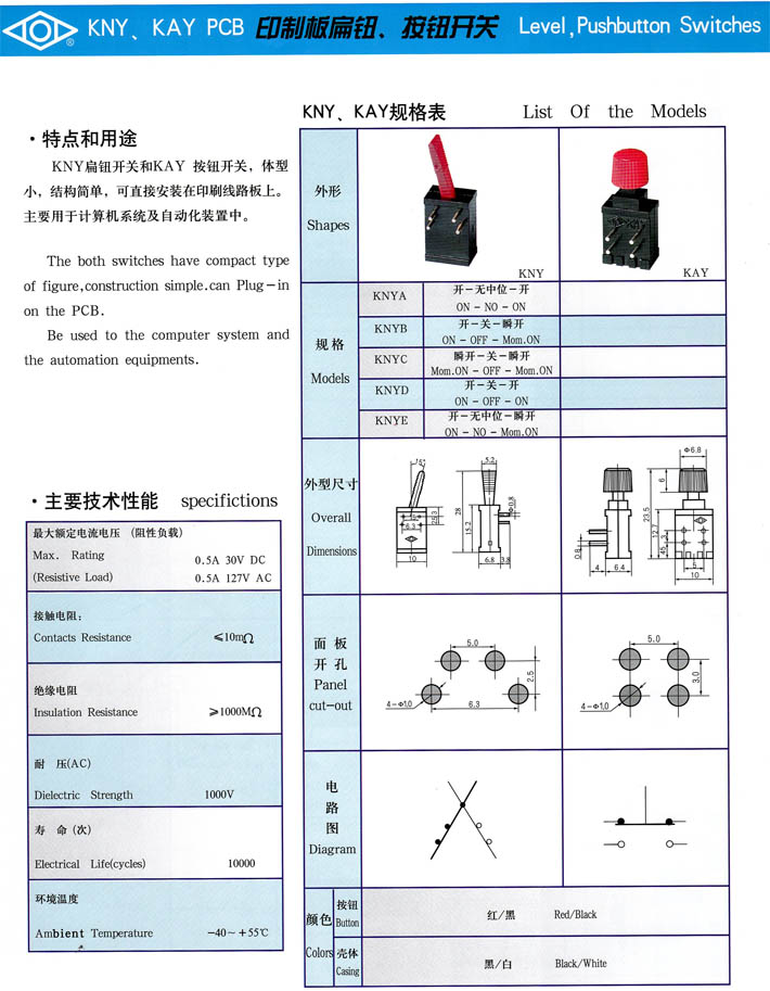 • KAY印制板按鈕KNY扁鈕開關 產(chǎn)品型號:KAY印制板按鈕KNY扁鈕開關